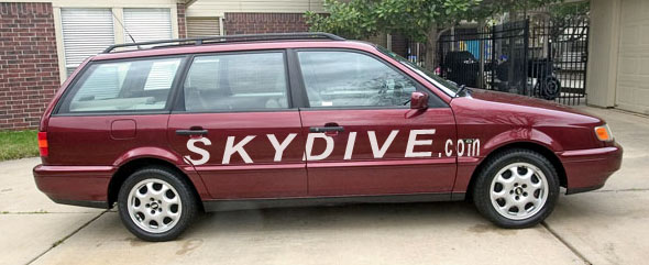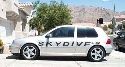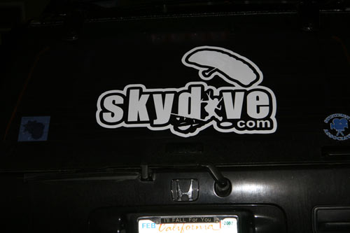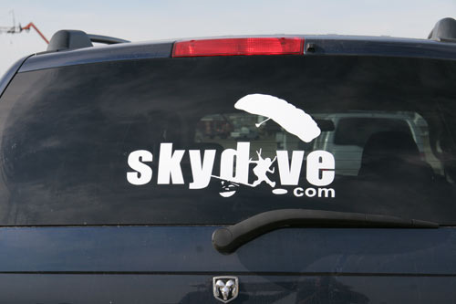 Here's a jump-start. When you sign your DZ to skydive.com, We'll send you ten vinyl cut window stickers. Be sure to use them. They are a great marketing tool with such a simple URL. Put them on skydiver's cars that drive in and around the market areas you hope to target. |